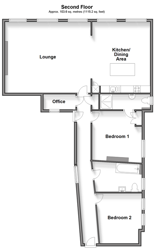 This really is a spectacular second floor apartment! Vast open spaces with light that cascades in, complimented with roof top and countryside views and a contemporary finish. Better still, it is about as centrally located in the town as you could possibly get! Room sizes:Entrance HallBedroom 2: 11'8 x 10'5 (3.56m x 3.18m)BathroomBedroom 1: 12'1 x 11'2 (3.69m x 3.41m)En-Suite Shower RoomOffice: 6'0 x 4'1 (1.83m x 1.25m)Lounge: 20'1 x 16'6 (6.13m x 5.03m)Kitchen/Dining Area: 16'6 x 13'4 (5.03m x 4.07m)