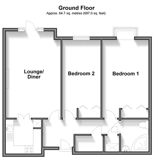 Please refer to the footnote regarding the services and appliances. Room sizes:Entrance HallLounge/Diner: 18'0 x 11'4 (5.49m x 3.46m)Kitchen: 7'4 x 7'0 (2.24m x 2.14m)Shower Room: 6'11 x 5'8 (2.11m x 1.73m)Bedroom 2: 16'2 x 8'0 (4.93m x 2.44m)Bedroom 1: 16'3 x 9'1 (4.96m x 2.77m)Residents ParkingGarden