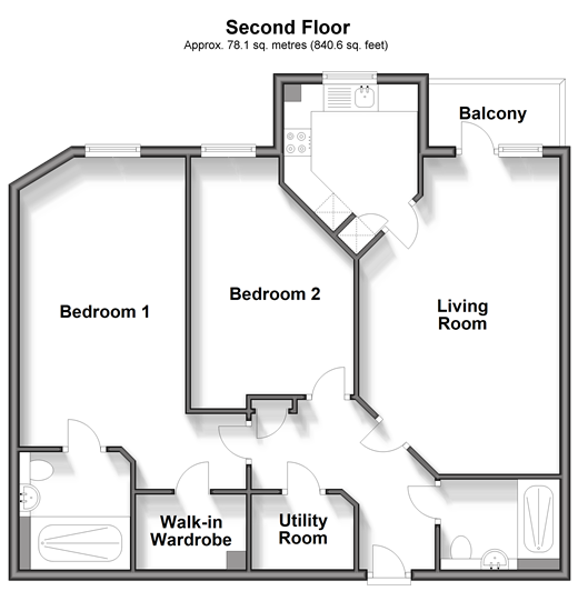 Please refer to the footnote regarding the services and appliances. Room sizes:HallLiving Room: 19'2 x 11'4 (5.85m x 3.46m)Kitchen: 9'9 x 7'9 (2.97m x 2.36m)Bedroom 1: 17'1 x 10'10 (5.21m x 3.30m)En-Suite Shower Room: 7'0 x 6'10 (2.14m x 2.08m)Walk In WardrobeBedroom 2: 14'8 x 9'7 (4.47m x 2.92m)Shower Room: 6'11 x 5'3 (2.11m x 1.60m)Utility RoomBalconyCommunal GardensAllocated Parking