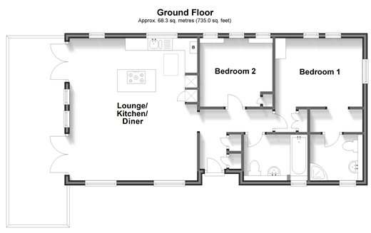 Please refer to the footnote regarding the services and appliances. Room sizes:HallwayLounge/Kitchen/Diner: 19'1 x 16'9 (5.82m x 5.11m)Bedroom 2: 9'6 x 9'5 (2.90m x 2.87m)Bathroom: 8'5 x 6'5 (2.57m x 1.96m)Bedroom 1: 12'6 x 11'7 (3.81m x 3.53m)Ensuite Shower RoomSun deck: 6'7 x 6'2 (2.01m x 1.88m)Front GardenRear GardenSide Garden
