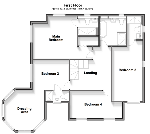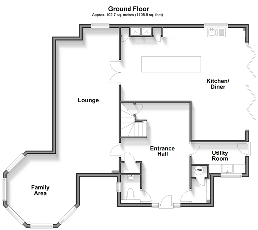 Room sizes:Entrance Hall: 18'3 (5.57m) x 8'6 (2.59m) narrowing to 7'3 (2.21m)CloakroomUtility RoomLounge Area: 26'7 (8.11m) narrowing to 24'5 (7.45m) x 11'4 (3.46m)Family Area: 12'7 maximum x 12'6 (3.84m x 3.81m)Kitchen/Breakfast/Diner: (L-shaped) 23'3 x 13'0 (7.09m x 3.97m) plus 9'8 x 7'4 (2.95m x 2.24m)FIRST FLOORLandingMain Bedroom: 14'4 (4.37m) x 13'1 (3.99m) narrowing to 10'9 (3.28m)En-suite Shower RoomFamily Bath/Shower Room: 9'3 (2.82m) narrowing to 8'5 (2.57m) x 8'3 (2.52m)Bedroom 2: 18'9 (5.72m) narrowing to 17'0 (5.19m) x 9'8 (2.95m)En-suite Shower RoomBedroom 4: 16'8 (5.08m) narrowing to 12'8 (3.86m) x 8'8 (2.64m)Bedroom 3: 12'7 x 12'7 (3.84m x 3.84m) plus 11'5 x 9'3 (3.48m x 2.82m)En-suite Shower RoomOUTSIDERear GardenFront GardenDrivewayOUTBUILDING - Ground FloorDouble Garage: 17'6 x 17'6 (5.34m x 5.34m)OUTBUILDING - First FloorStudio/Office: 17'5 (5.31m) narrowing to 14'5 (4.40m) x 9'8 (2.95m)
