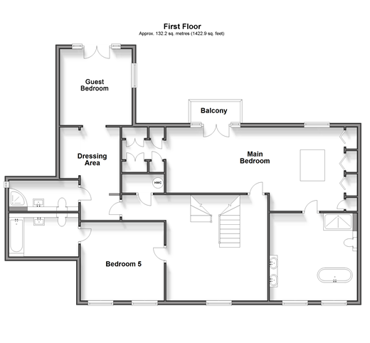 Room sizes:Entrance Hall: 15'7 (4.75m) x 13'0 (3.97m) narrowing to 9'0 (2.75m)Study: 13'0 (3.97m) narrowing to 9'1 (2.77m) x 9'1 (2.77m)CloakroomSitting Room: 26'6 x 13'0 (8.08m x 3.97m)Dining Room: 15'8 (4.78m) x 14'2 (4.32m) narrowing to 10'0 (3.05m)Kitchen/Breakfast/Family Room: 29'5 (8.97m) x 23'8 (7.22m) narrowing to 18'4 (5.59m)Utility Room: 9'5 x 7'6 (2.87m x 2.29m)FIRST FLOORLanding: 16'1 (4.91m) narrowing to 9'1 (2.77m) x 15'7 (4.75m)Bedroom 5: 13'1 x 12'1 (3.99m x 3.69m)En Suite BathroomBedroom 4: 11'7 x 11'4 (3.53m x 3.46m)Dressing Area: 10'9 (3.28m) narrowing to 8'0 (2.44m) x 10'5 (3.18m)En Suite Shower RoomMain Bedroom: 29'1 into fitted wardrobes (8.87m) x 13'9 (4.19m) narrowing to 10'0 (3.05m)Walk In WardrobeEn Suite Bath/Shower Room: 13'0 x 12'2 (3.97m x 3.71m)BalconySECOND FLOORLandingBedroom 2: 14'8 x 13'0 (4.47m x 3.97m)En Suite Shower RoomBedroom 3: 14'8 x 12'9 (4.47m x 3.89m)En Suite Shower RoomOUTSIDERear GardenGated DrivewayOUTBUILDINGDouble Garage: 19'8 x 18'7 (6.00m x 5.67m)Gym: 19'8 x 9'8 (6.00m x 2.95m)