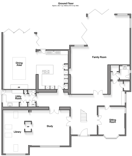 Room sizes:Reception HallSitting Room: 15'7 into bay x 12'7 (4.75m x 3.84m)Study: 18'1 x 17'1 (5.52m x 5.21m)Library: 21'0 x 12'5 (6.41m x 3.79m)Utility Room: 15'8 x 8'1 (4.78m x 2.47m)Kitchen Area: 18'6 x 16'0 (5.64m x 4.88m)Dining Area: 27'4 x 15'7 (8.34m x 4.75m)Family/Living Room: (L-shaped) 23'8 x 20'4 (7.22m x 6.20m) plus 17'8 x 14'2 (5.39m x 4.32m)Inner HallCloakroomStore/Boot RoomFIRST FLOORGalleried LandingBedroom 3: 17'4 x 13'1 (5.29m x 3.99m)En Suite Shower Room: 10'9 (3.28m) x 8'5 (2.57m) narrowing to 4'7 (1.40m)Bedroom 2: 18'5 x 13'9 (5.62m x 4.19m)En Suite Shower Room: 10'1 x 7'4 (3.08m x 2.24m)Main Bedroom: 17'8 x 12'7 (5.39m x 3.84m)En Suite Bath/Shower Room: 12'1 x 8'7 (3.69m x 2.62m)Balcony/Roof Terrace: 29'2 x 8'9 (8.90m x 2.67m)Bedroom 4: 13'7 x 12'7 (4.14m x 3.84m)En Suite Shower Room: 9'2 x 6'5 (2.80m x 1.96m)OUTSIDERear GardenFruit GardenElectric Gated DrivewayOUTBUILDINGDouble Garage: 24'5 x 20'7 (7.45m x 6.28m)