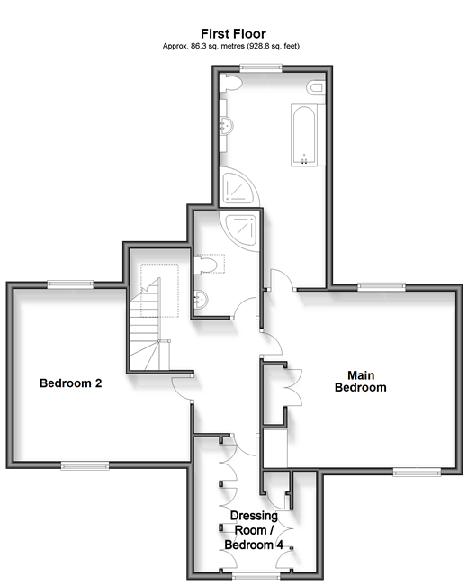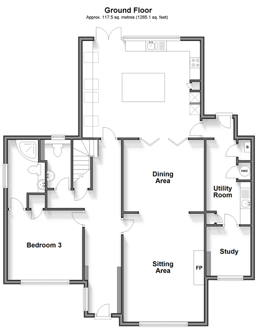 Room sizes:Entrance HallSitting Room: 17'2 x 12'10 (5.24m x 3.91m)Dining Area: 12'9 x 11'2 (3.89m x 3.41m)Kitchen/Breakfast Room: 18'7 x 15'3 (5.67m x 4.65m)Utility Room: 13'4 (4.07m) x 7'0 (2.14m) narrowing to 4'8 (1.42m)Study: 7'9 x 7'0 (2.36m x 2.14m)Bedroom 3: 11'1 x 10'11 (3.38m x 3.33m)En Suite Shower RoomFIRST FLOORLandingMain Bedroom: 15'6 x 14'8 (4.73m x 4.47m)En Suite Bath/Shower Room: 19'1 (5.82m) narrowing to 12'3 (3.74m) x 9'4 (2.85m)Bedroom 2: 15'10 (4.83m) narrowing to 10'1 (3.08m) x 15'5 (4.70m)Shower RoomBedroom 4/Dressing Room: 7'0 x 5'10 into fitted wardrobes (2.14m x 1.78m)OUTSIDERear GardenFront GardenDrivewayOUTBUILDINGGarage: 18'4 x 8'6 (5.59m x 2.59m)Home Office: 18'3 x 8'8 (5.57m x 2.64m)