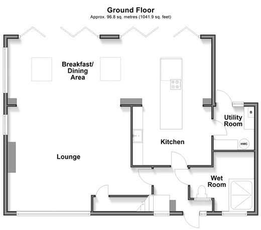 Please refer to the footnote regarding the services and appliances. Room sizes:Entrance HallWet Room: 10'1 x 9'1 (3.08m x 2.77m)Kitchen: 13'10 x 11'5 (4.22m x 3.48m)Utility RoomBreakfast/Dining Area: 33'1 x 9'8 (10.09m x 2.95m)Lounge: 19'9 x 16'9 (6.02m x 5.11m)LandingBedroom 1: 16'7 x 13'5 (5.06m x 4.09m)Bedroom 3: 10'5 x 9'6 (3.18m x 2.90m)Bedroom 2: 10'7 x 9'4 (3.23m x 2.85m)Bathroom: 6'7 x 6'5 (2.01m x 1.96m)GarageOff-Road ParkingFront & Rear Gardens