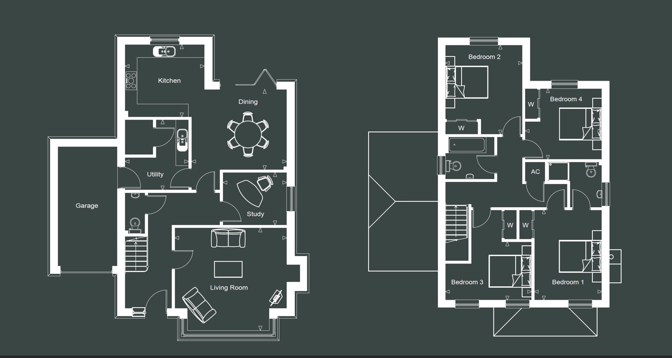 The Chamomile boasts 4 double bedrooms, all with fitted wardrobes, 1 family bathroom plus an en-suite to the principle bedroom and downstairs cloakroom. The ground floor offers a large open plan kitchen/dining area, a separate living room, utility room and study! The attached single garage is fitted with an electrically remote operated door with external parking.