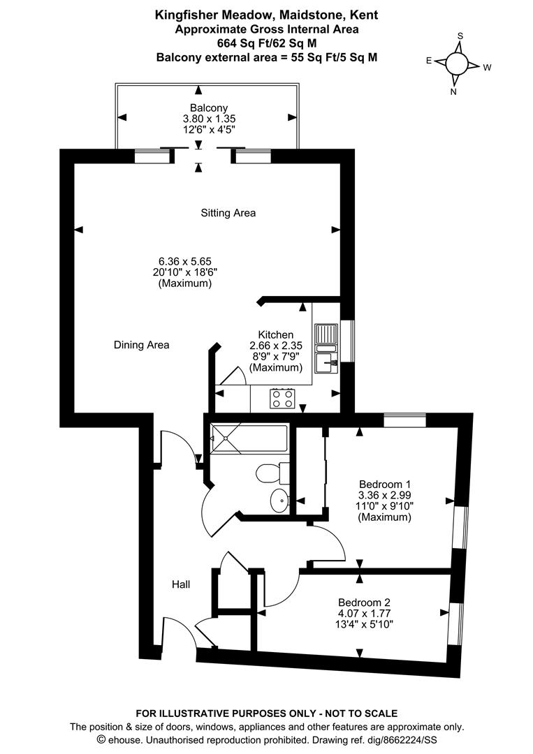 Page & Wells are delighted to bring to the market this rarely available and beautifully presented two bedroom apartment situated on the ever popular Kingfisher Meadow development on the outskirts of Maidstone town centre. The property features a spacious sitting/dining room with sliding doors opening to the balcony, a modern kitchen with built-in appliances, two good sized bedrooms and a modern bathroom. There is allocated parking and pleasant riverside walks close by. Tenure: Leasehold.