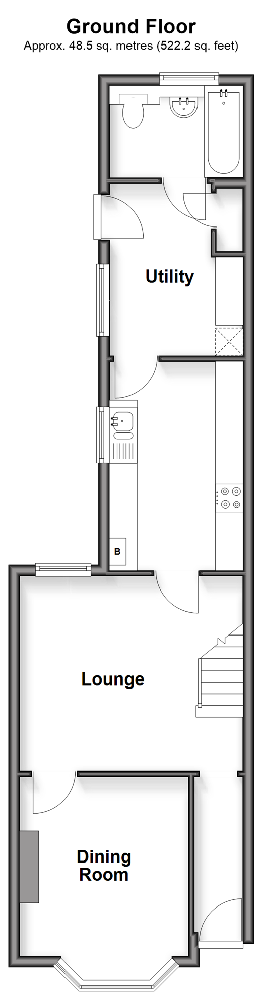 This larger than average Victorian terraced house is situated within walking distance of Gillingham High Street and main line station and would be ideal for a first time buyer. Room sizes:Entrance HallLounge: 13'1 x 11'5 (3.99m x 3.48m)Dining Room: 12'5 into bay x 9'8 (3.79m x 2.95m)Kitchen: 12'2 x 7'9 (3.71m x 2.36m)Utility/Breakfast RoomBathroomLandingBedroom 1: 13'2 x 10'4 (4.02m x 3.15m)Bedroom 2: 11'7 x 8'7 (3.53m x 2.62m)Bedroom 3: 8'8 x 8'0 (2.64m x 2.44m)Front GardenRear Garden