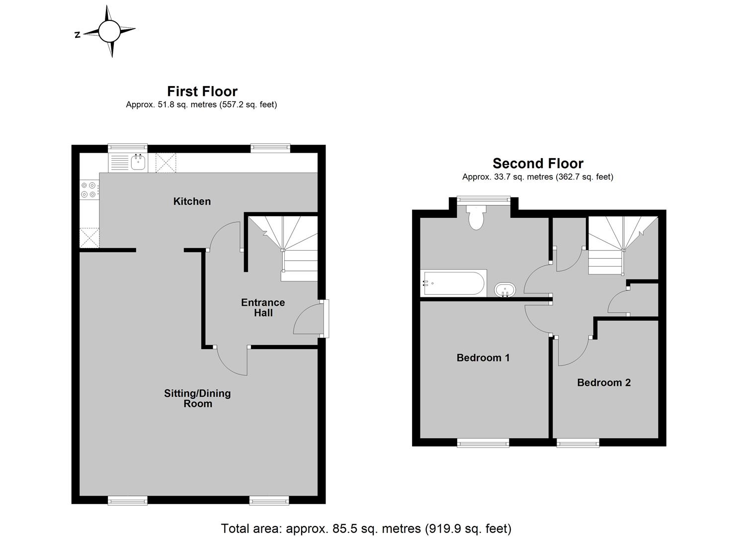 The spacious accommodation is arranged over two floors to provide an entrance hall, sitting/dining room with study area open-plan to the kitchen, two bedrooms and a family bathroom. Both bedrooms enjoy views across Whitstable and towards the sea in the distance.