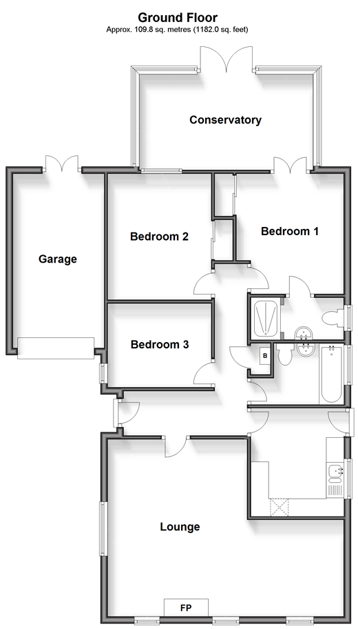 This detached bungalow with no onward chain, would be ideal for home working if required, has a long driveway providing ample parking along with a garage, and has a large rear garden for entertaining. Room sizes:Entrance HallLounge: 16'5 x 12'10 (5.01m x 3.91m) plus 9'0 x 9'0 (2.75m x 2.75m)Kitchen: 10'0 x 8'7 (3.05m x 2.62m)Conservatory: 17'0 x 9'4 (5.19m x 2.85m)BathroomBedroom 1: 11'0 x 10'0 (3.36m x 3.05m)En-Suite Shower RoomBedroom 2: 11'8 x 9'7 (3.56m x 2.92m)Bedroom 3: 9'5 x 7'9 (2.87m x 2.36m)Gardens to Front & RearOff Road ParkingGarage
