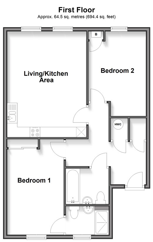 Presenting this modern 2 bedroom first floor flat with a range of modern and sought-after features. The property boasts 2 bedrooms and an en-suite for added convenience. There is a dedicated parking space outside the property and is within walking distance to a mainline train station. Room sizes:Living/Kitchen Area: 17'7 x 12'9 (5.36m x 3.89m)Bedroom 1: 15'0 x 9'0 (4.58m x 2.75m)En-SuiteBedroom 2: 13'0 x 9'0 (3.97m x 2.75m)BathroomAllocated ParkingCommunal Garden