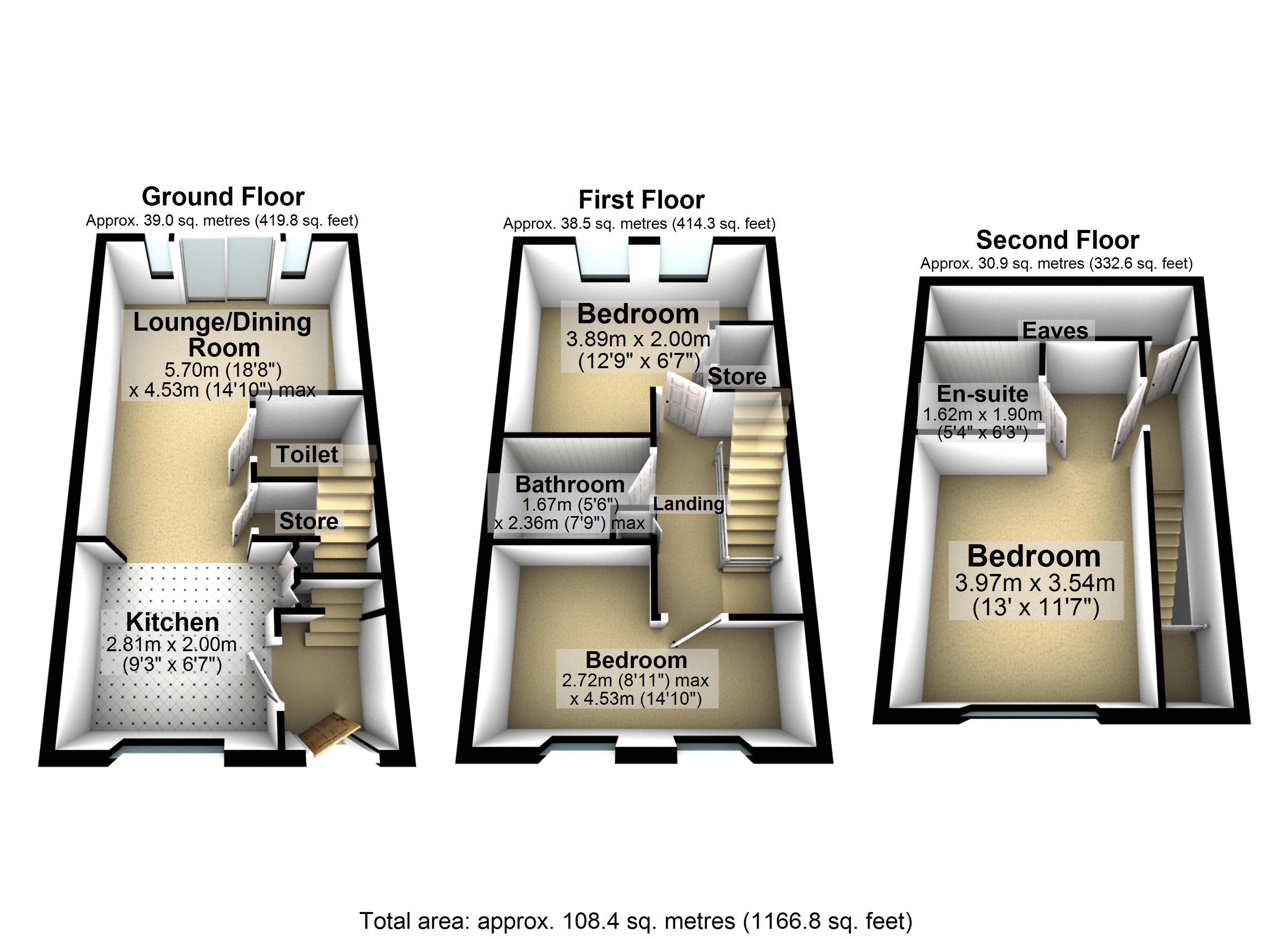 Velux window, cabinet and radiator. Shower, W/C and wash hand basin.