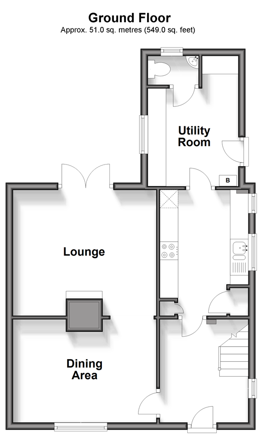 Please refer to the footnote regarding the services and appliances. Room sizes:HallLounge: 13'0 x 11'7 (3.97m x 3.53m)Dining Room: 13'2 x 9'5 (4.02m x 2.87m)Kitchen: 11'7 x 8'0 (3.53m x 2.44m)Utility RoomCloak RoomLandingBedroom 1: 13'2 x 11'5 (4.02m x 3.48m)Bedroom 2: 11'11 x 8'8 (3.63m x 2.64m)Bedroom 3: 9'0 x 8'2 (2.75m x 2.49m)Bath/Shower Room: 7'10 x 5'2 (2.39m x 1.58m)Front DrivewayRear Garden