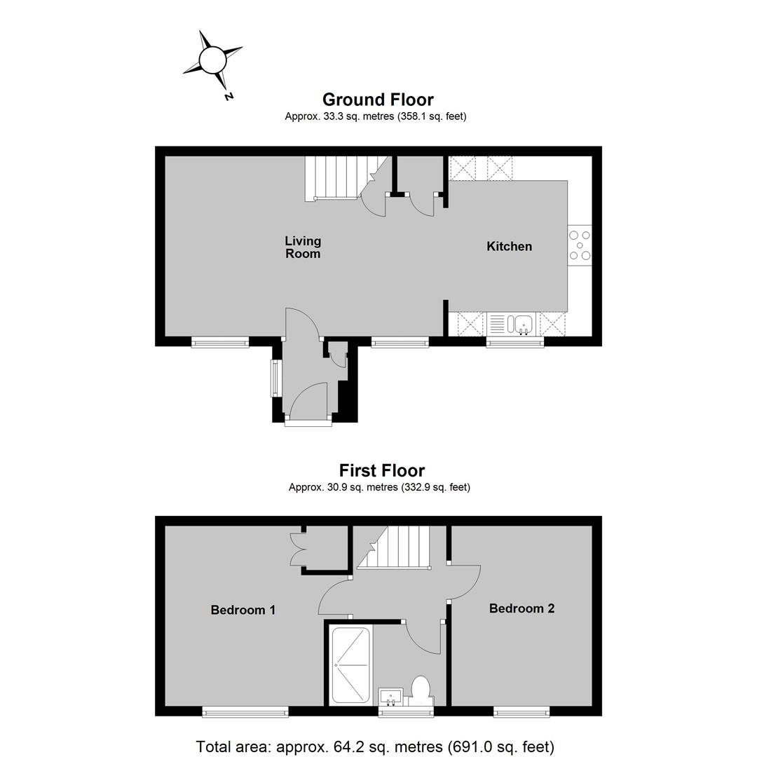 The generously proportioned and beautifully presented accommodation is arranged on the ground floor to provide an entrance porch, and a living room opening to a contemporary kitchen with a range of integrated appliances and underfloor heating. To the first floor there are two generous double bedrooms, and a stylish shower room.