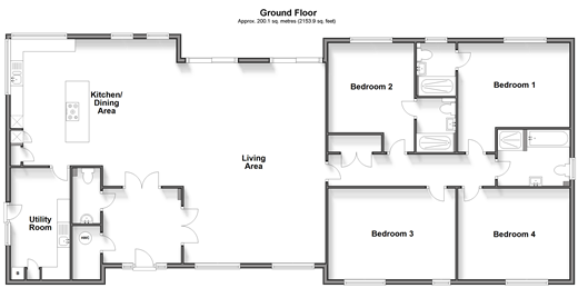 This home will leave you speech less. Spacious is an understatement. The open plan nature creates the most sociable of environments. 4 double bedrooms, 2 with en-suite facilities and a very energy efficient build make for very comfortable surroundings. This is further enhanced by the ever so generous parking facilities and fabulous location. Room sizes:Entrance Hall: 10'0 x 9'9 (3.05m x 2.97m)Cloak RoomLiving Area: 26'4 x 19'1 (8.03m x 5.82m)Kitchen/Dining Area: 26'4 x 19'1 (8.03m x 5.82m)Utility Room: 14'11 x 7'9 (4.55m x 2.36m)Services RoomBedroom 1: 14'7 x 13'9 (4.45m x 4.19m)En-Suite: 6'9 x 5'5 (2.06m x 1.65m)Bedroom 2: 14'5 x 11'2 (4.40m x 3.41m)En-Suite: 7'1 x 5'2 (2.16m x 1.58m)Bedroom 3: 15'11 x 12'1 (4.85m x 3.69m)Bedroom 4: 14'8 x 12'6 (4.47m x 3.81m)Bathroom: 8'9 x 7'6 (2.67m x 2.29m)Rear/wrap around GardensTriple Car Barn and Parking