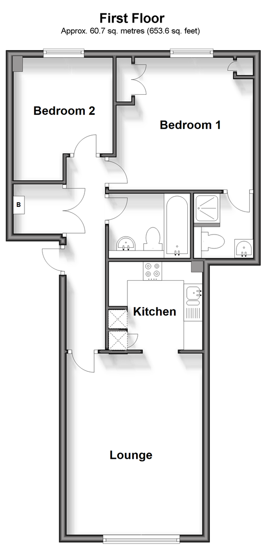Please refer to the footnote regarding the services and appliances. Room sizes:HallwayLounge: 15'10 x 11'10 (4.83m x 3.61m)Kitchen: 7'9 x 7'9 (2.36m x 2.36m)Bedroom 1: 12'8 x 12'6 (3.86m x 3.81m)En-Suite Shower Room: 5'7 x 5'7 (1.70m x 1.70m)Bedroom 2: 9'9 x 8'11 (2.97m x 2.72m)Bathroom: 7'3 x 5'7 (2.21m x 1.70m)2 x Allocated Parking