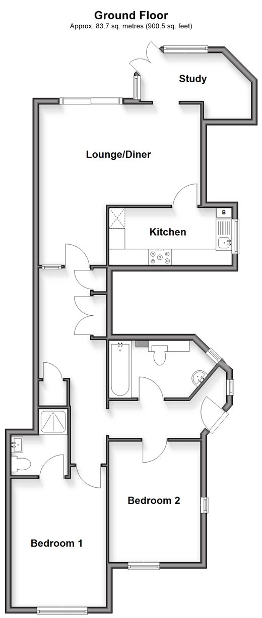 Occupying a prime position directly opposite the sea, this beautifully presented ground floor apartment offers an exceptional opportunity to enjoy stylish, spacious living in one of Westgate-on-Sea's most sought-after locations. Set within a well-maintained building and benefiting from a private garage to the rear, the apartment boasts a generous layout with light-filled rooms and a welcoming, homely atmosphere throughout. Presented in excellent condition, the property is ready for immediate occupation, whether as a full-time residence or a weekend retreat The home is enviably positioned beside Westgate Golf Course, making it a dream for golf enthusiasts, while also being within easy walking distance to Westgate's charming main street, offering an array of shops, cafés, and local conveniences. With stunning sea views just across the road, this property truly embraces the best of coastal living. Step outside and enjoy direct access to picturesque coastal walks, stretching for miles along the beautiful Thanet coastline. This is a rare blend of space, setting, and lifestyle - all in a peaceful yet well-connected location. Early viewing is highly recommended to fully appreciate the charm and quality of this unique home. Room sizes:Entrance HallwayBedroom 2: 12'7 x 10'2 (3.84m x 3.10m)Bedroom 1: 14'7 x 10'2 (4.45m x 3.10m)En-Suite Shower RoomBathroom: 11'3 x 5'9 (3.43m x 1.75m)Lounge/Diner: 17'1 x 16'8 (5.21m x 5.08m)Kitchen: 12'7 x 5'8 (3.84m x 1.73m)Study: 11'5 x 5'4 (3.48m x 1.63m)Garage