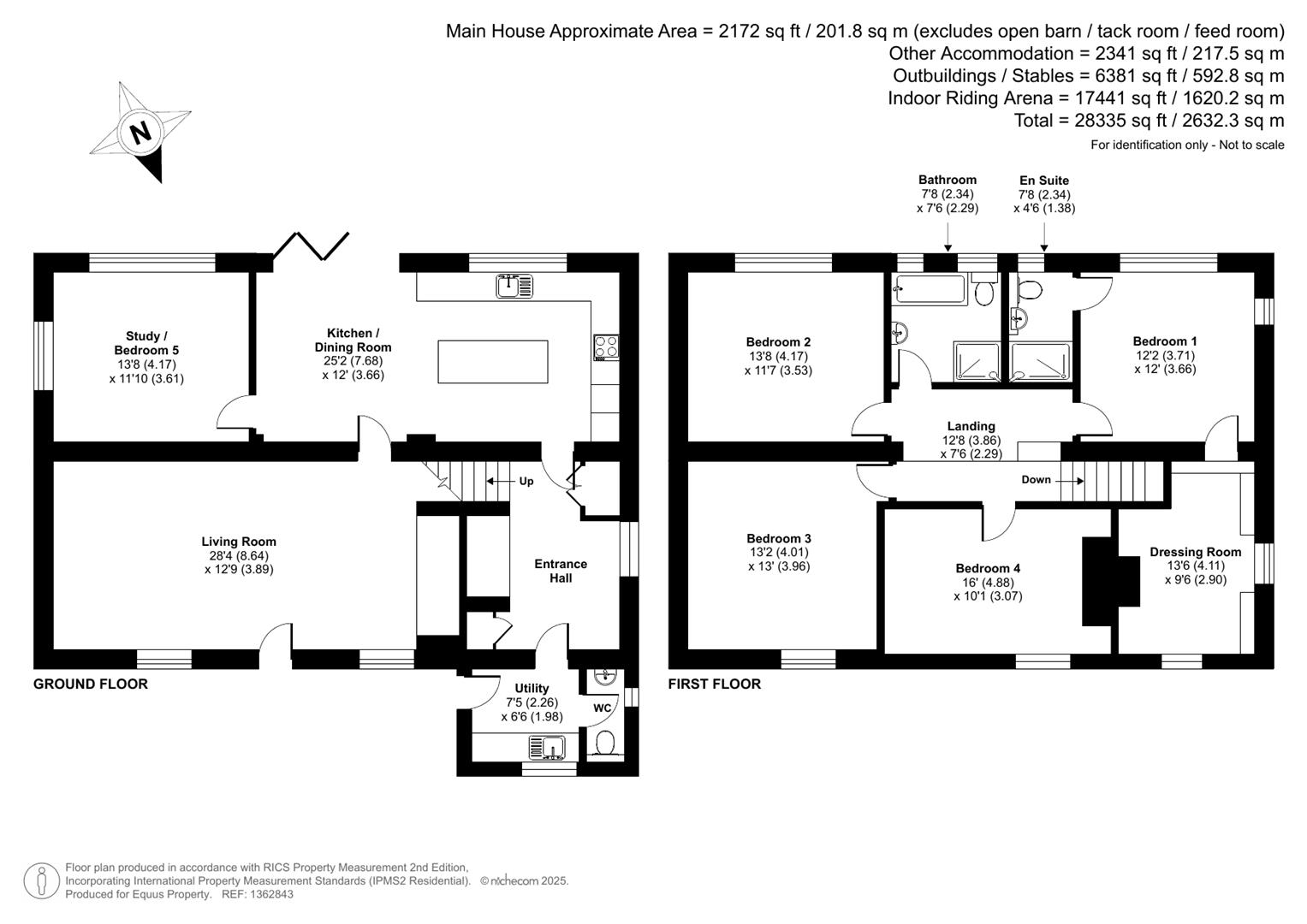 Set in 10.97 acres (*TBV) on the rural outskirts of Hawkinge in East Kent a former EQUESTRIAN COMPETITION CENTRE and LIVERY YARD comprising of a detached 4/5 bedroom character house, Indoor Riding School ( 66M x 24M ), Outdoor Riding Arena 90M x 24M (with soft track surface and underground irrigation),former separate student accommodation/potential grooms living quarters, extensive Stable Complex and Yard including 18 Loose Boxes of various sizes & construction, tack rooms, feed rooms plus an Open Fronted Steel Framed Barn (60ft x 39.4ft). There are 3 fenced paddocks.