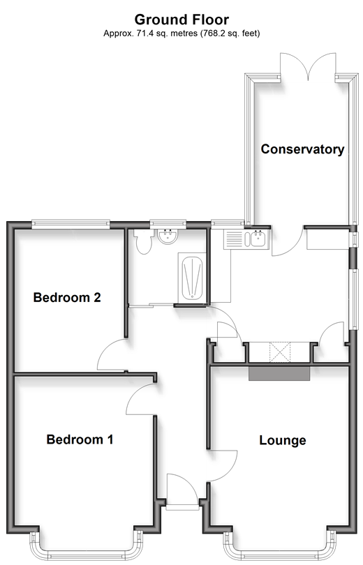 Please refer to the footnote regarding the services and appliances. Room sizes:Entrance HallwayLounge: 16'10 x 12'10 (5.13m x 3.91m)Bedroom 1: 14'9 x 12'10 (4.50m x 3.91m)Bedroom 2: 11'8 x 9'0 (3.56m x 2.75m)Shower RoomKitchen: 10'8 x 10'5 (3.25m x 3.18m)Conservatory: 11'6 x 7'7 (3.51m x 2.31m)GarageDrivewayFront GardenRear Garden