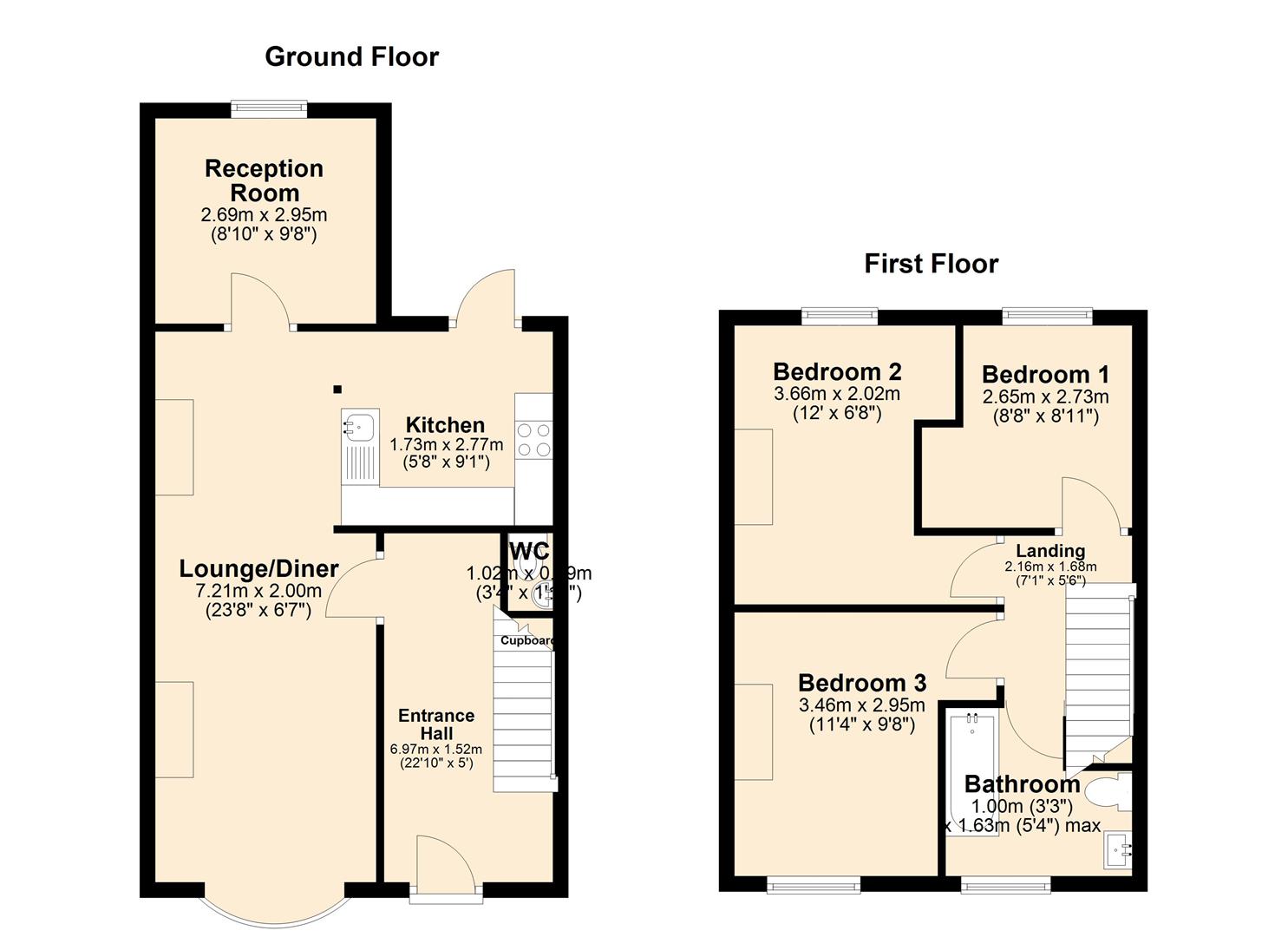 Upstairs, the property offers three generous double bedrooms and a modern family bathroom.