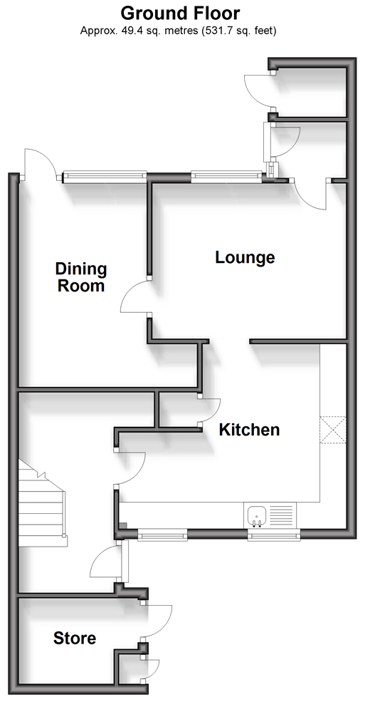 Please refer to the footnote regarding the services and appliances. Room sizes:Entrance HallwayKitchen: (L-shaped) 11'3 x 8'7 (3.43m x 2.62m) plus 5'8 x 4'5 (1.73m x 1.35m)Lounge: 12'1 x 9'3 (3.69m x 2.82m)Dining Room: 12'9 x 7'9 (3.89m x 2.36m)Rear LobbyLandingBedroom 1: 12'1 x 9'7 (3.69m x 2.92m)Bedroom 2: 11'7 x 8'4 (3.53m x 2.54m)Bedroom 3: 9'8 x 7'9 (2.95m x 2.36m)Bathroom: 8'5 x 4'9 (2.57m x 1.45m)Front GardenStoreRear Garden