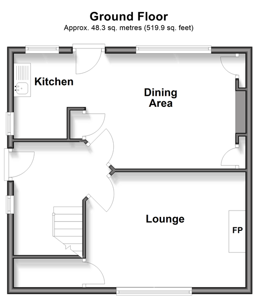 Please refer to the footnote regarding the services and appliances. Room sizes:Entrance HallLounge: 15'6 x 11'2 (4.73m x 3.41m)Dining Area: 14'5 x 11'3 (4.40m x 3.43m)Kitchen: 8'9 x 6'4 (2.67m x 1.93m)LandingBedroom 1: 13'6 x 10'2 (4.12m x 3.10m)Bedroom 2: 12'9 x 9'7 (3.89m x 2.92m)Bedroom 3: 9'7 x 6'8 (2.92m x 2.03m)BathroomFront GardenRear Garden