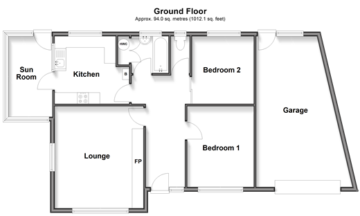 Please refer to the footnote regarding the services and appliances. Room sizes:Entrance HallwayLounge: 14'10 x 12'9 (4.52m x 3.89m)Bedroom 1: 11'10 x 9'7 (3.61m x 2.92m)Bedroom 2: 9'10 x 8'11 (3.00m x 2.72m)Separate ToiletBathroomKitchen: 10'10 x 9'10 (3.30m x 3.00m)Sun RoomGarageDrivewayFront GardenRear Garden