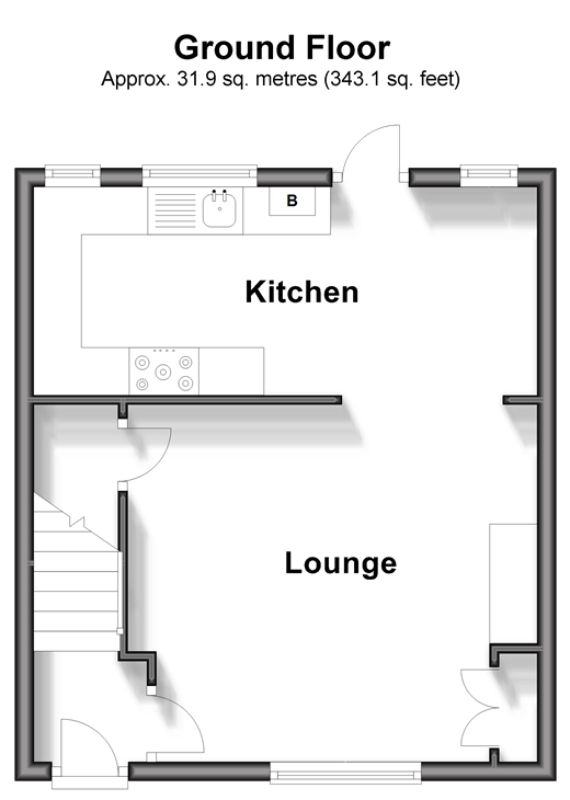 Please refer to the footnote regarding the services and appliances. Room sizes:Entrance HallLounge: 14'4 x 12'3 (4.37m x 3.74m)Kitchen: 17'2 x 7'2 (5.24m x 2.19m)LandingBedroom 1: 13'0 x 6'8 (3.97m x 2.03m)Bedroom 2: 8'5 x 7'10 (2.57m x 2.39m)Bathroom: 8'10 x 8'4 (2.69m x 2.54m)Front GardenRear Garden