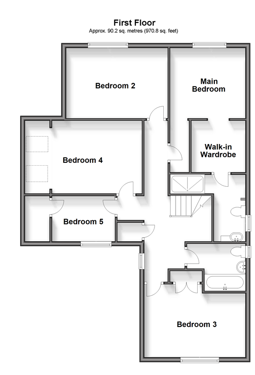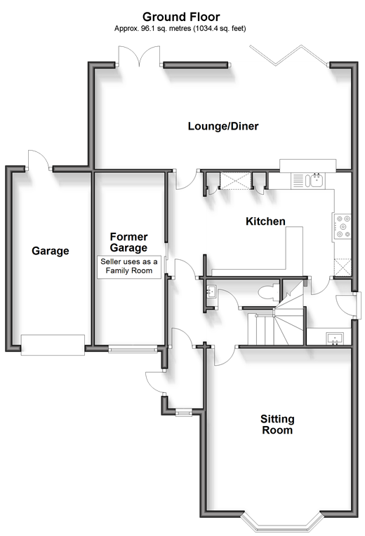 Room sizes:PorchHallCloakroomSitting Room: 17'4 x 14'6 (5.29m x 4.42m)Inner HallFormer Garage (Family Room): 16'4 x 7'8 (4.98m x 2.34m)Lounge/Diner: 25'7 x 9'9 (7.80m x 2.97m)Kitchen: 14'6 x 9'11 (4.42m x 3.02m)Utility Room: 6'5 x 5'2 (1.96m x 1.58m)FIRST FLOORLandingBedroom 3: 14'6 x 10'10 (4.42m x 3.30m)Family BathroomBedroom 5: 8'6 x 6'5 (2.59m x 1.96m)Bedroom 2: 18'0 x 9'11 (5.49m x 3.02m)Bedroom 4: 14'4 x 9'9 (4.37m x 2.97m)Main Bedroom: 17'1 x 11'3 (5.21m x 3.43m)Walk In WardrobeEn Suite Shower RoomOUTBUILDINGRoom 1 (Office): 11'6 x 8'11 (3.51m x 2.72m)OUTSIDERear GardenFront GardenDrivewayGarage: 16'4 x 7'8 (4.98m x 2.34m)