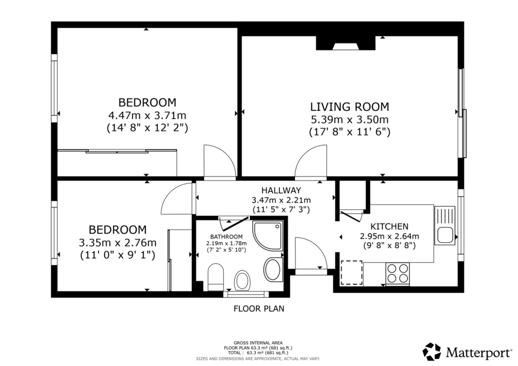 Internally, the bungalow is well presented and offers a practical layout ideally suited for comfortable single-level living. Both bedrooms are situated to the front of the property, benefiting from natural light throughout the day. The lounge is generously proportioned and located at the rear, opening onto the garden via a large sliding door — perfect for enjoying a seamless indoor-outdoor lifestyle. The kitchen, also positioned to the rear, is well appointed and provides a pleasant outlook over the garden. A modern shower room completes the accommodation, offering a clean and functional finish.