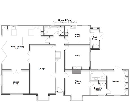 Set within 0.4 acres of beautiful gardens and grounds and presented to a high standard of finish, having been through a vast amount of extension, improvement and enhancement this beautiful detached house boasts every families dream. Have a swim in the morning in the swim jet pool after a work out in the gym. Enjoy entertaining guests whether your cooking in the open plan kitchen or having a game of pool in the games room. Countryside views, secluded gardens and more scope to change use of the outbuildings means this property offers something for any buyer. Room sizes:Entrance Hall: 31'0 x 5'0 (9.46m x 1.53m)Kitchen/Dining Area: 24'4 (7.42m) narrowing to 16'0 (4.88m) x 23'8 (7.22m)Games Room: 15'6 x 14'6 (4.73m x 4.42m)Lounge: 28'9 x 14'1 (8.77m x 4.30m)Sitting Room: 14'2 x 14'1 (4.32m x 4.30m)Bedroom 1: 14'0 x 10'0 (4.27m x 3.05m)Dressing Room: 9'2 x 8'1 (2.80m x 2.47m)Study: 14'5 x 14'4 (4.40m x 4.37m)Utility Room: 14'2 x 10'2 (4.32m x 3.10m)Boot Room: 9'10 x 5'0 (3.00m x 1.53m)Cloakroom: 8'0 x 5'0 (2.44m x 1.53m)LandingBedroom 2: 21'2 x 9'6 (6.46m x 2.90m)Jack and Jill Bathroom: 8'4 x 5'6 (2.54m x 1.68m)Bedroom 3: 12'7 x 10'7 (3.84m x 3.23m)Bedroom 4: 14'8 x 10'10 (4.47m x 3.30m)Bedroom 5: 17'1 x 11'3 (5.21m x 3.43m)Bathroom: 7'9 x 7'3 (2.36m x 2.21m)Garage: 18'0 x 17'4 (5.49m x 5.29m)Store Room: 11'4 x 7'9 (3.46m x 2.36m)Gym: 14'1 x 11'4 (4.30m x 3.46m)Store RoomStudio Room: 23'2 x 15'5 (7.07m x 4.70m)DrivewaySurrounding GardensSwim Jet Pool