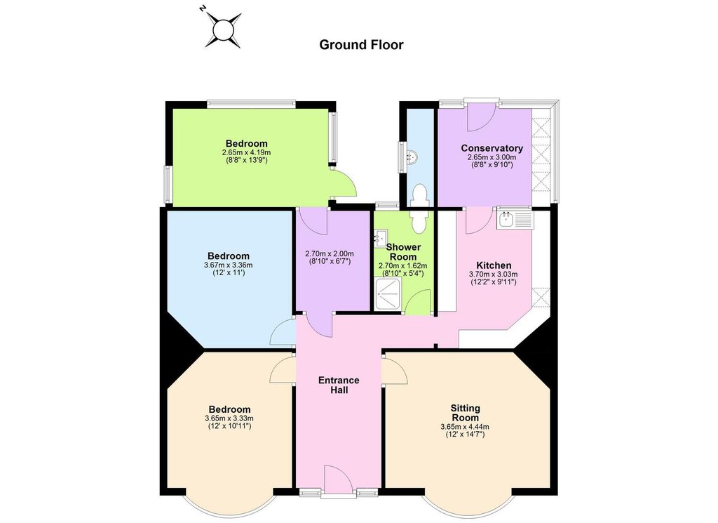 Upon entering the property, a generous hallway offers a warm welcome and sets the tone for the rest of the home. To the right is a bright and airy lounge, enhanced by a charming bay window to the front, flooding the space with natural light and offering a comfortable area for relaxation. Opposite, the master bedroom mirrors the lounge with its own bay window, creating a light-filled and inviting retreat. A second double bedroom is situated just behind, also offering good proportions and versatility. To the rear of the property is a third bedroom, accessed via a useful study area, providing an ideal setup for those in need of a home office or hobby room.