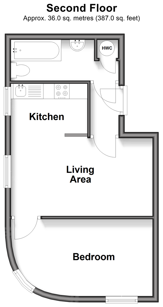 Please refer to the footnote regarding the services and appliances. Room sizes:Entrance HallwayLiving Area: 15'5 x 7'9 (4.70m x 2.36m)Kitchen: 8'1 x 6'2 (2.47m x 1.88m)Bedroom: 15'2 x 8'11 (4.63m x 2.72m)Bathroom