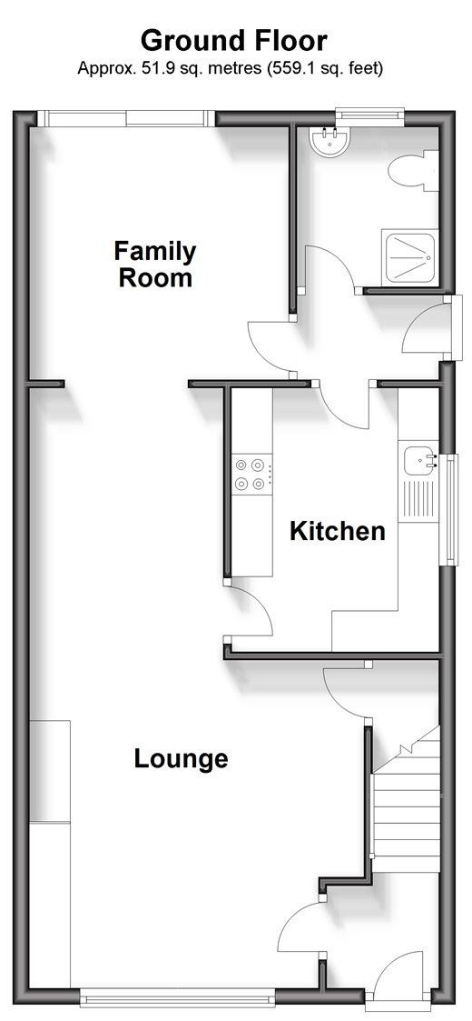 Please refer to the footnote regarding the services and appliances. Room sizes:Entrance HallLounge: 23'7 x 7'6 (7.19m x 2.29m)Kitchen: 10'4 x 8'3 (3.15m x 2.52m)Family Room: 9'9 x 9'4 (2.97m x 2.85m)Shower RoomLandingBathroomBedroom 2: 10'2 x 6'7 (3.10m x 2.01m)Bedroom 1: 11'4 x 9'5 (3.46m x 2.87m)Bedroom 3: 9'4 x 9'3 (2.85m x 2.82m)Front GardenRear GardenGarage En Bloc