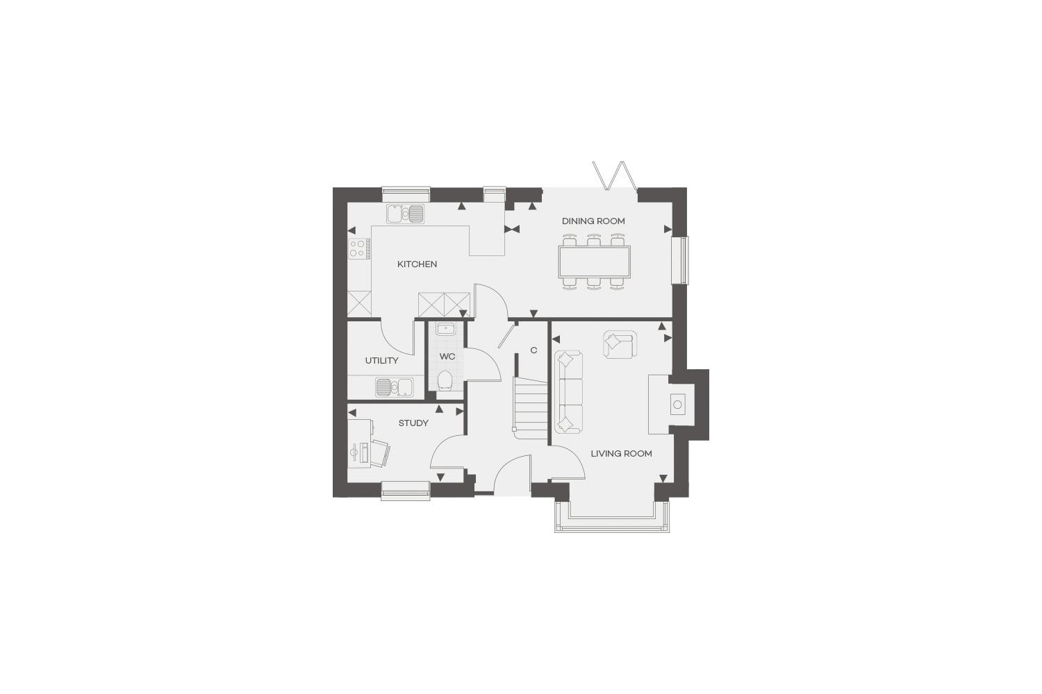 1,281 sqft – 4 bedrooms, 2 bathrooms, study/snug & utility room