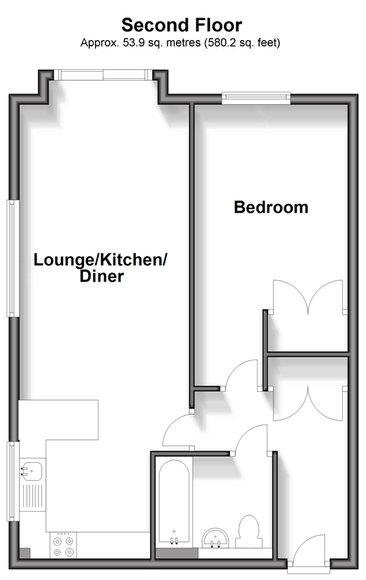 This second floor apartment is less than 5 years old, so ready to go! Enjoy the panoramic views over the valley. It is also an excellent property to add to your Buy To Let portfolio. Room sizes:Entrance HallLounge/Kitchen/Diner: 30'1 x 10'4 (9.18m x 3.15m)Bedroom: 17'3 x 9'4 (5.26m x 2.85m)Bathroom: 6'9 x 6'1 (2.06m x 1.86m)Allocated Parking Space