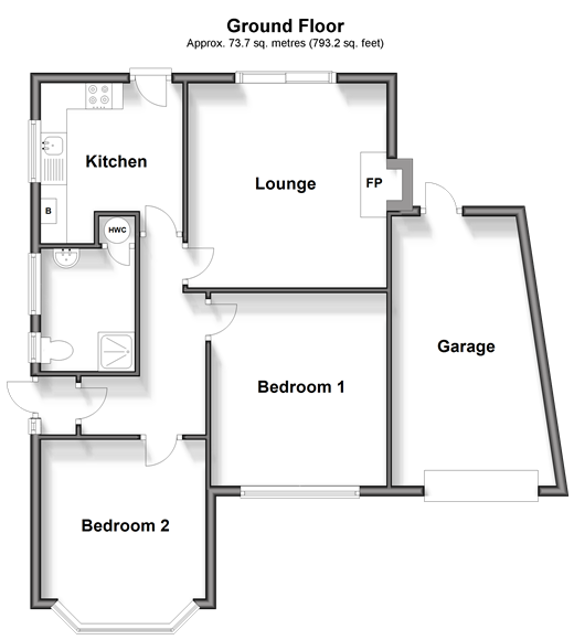 Please refer to the footnote regarding the services and appliances. Room sizes:Entrance HallLounge: 12'10 x 12'4 (3.91m x 3.76m)Kitchen: 10'1 x 8'11 (3.08m x 2.72m)Bedroom 1: 12'1 x 10'4 (3.69m x 3.15m)Bedroom 2: 11'11 x 10'11 (3.63m x 3.33m)Shower roomGarage