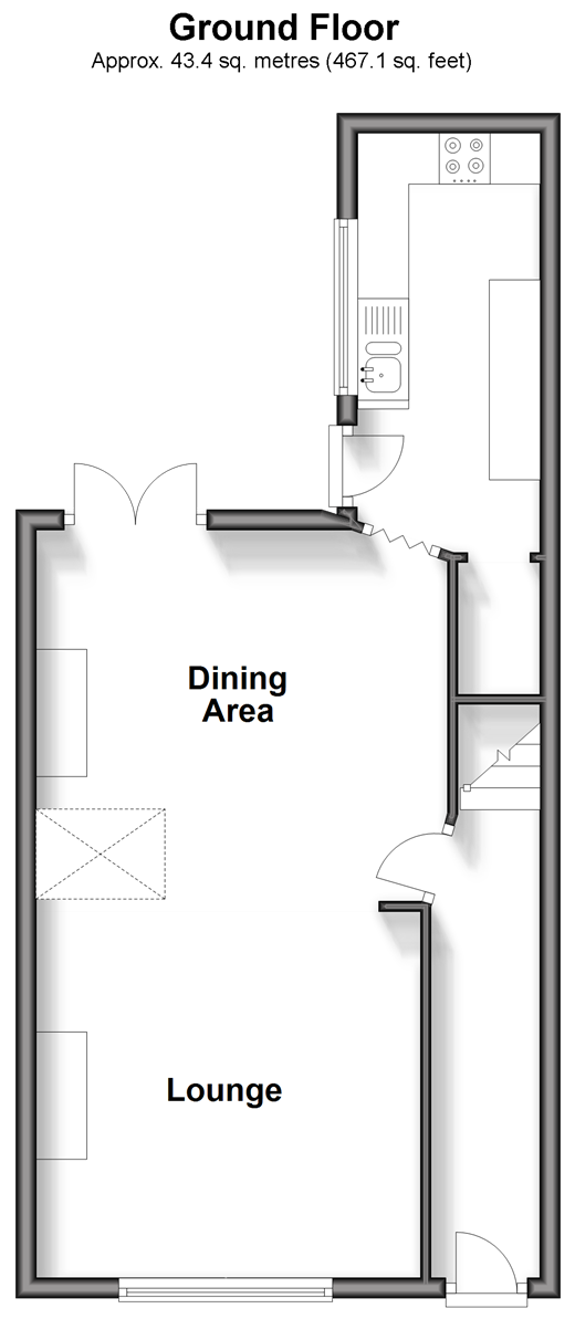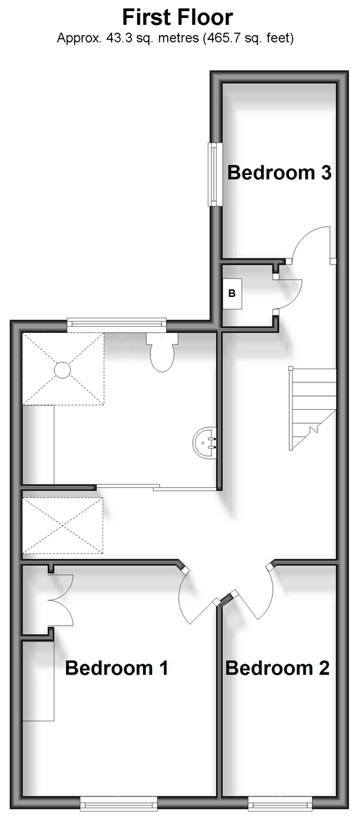 Please refer to the footnote regarding the services and appliances. Room sizes:Entrance HallLounge/Dining Area: 24'3 x 12'6 (7.40m x 3.81m)Kitchen: 13'5 x 6'5 (4.09m x 1.96m)LandingBedroom 1: 13'3 x 8'7 (4.04m x 2.62m)Bedroom 2: 12'1 x 7'1 (3.69m x 2.16m)Bedroom 3: 8'8 x 6'6 (2.64m x 1.98m)Bathroom: 11'3 x 8'4 (3.43m x 2.54m)Front and Rear GardensDriveway