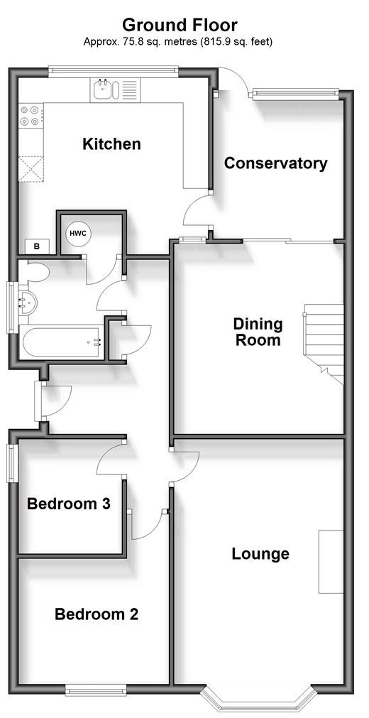Please refer to the footnote regarding the services and appliances. Room sizes:Entrance HallLounge: 17'5 into bay x 11'1 (5.31m x 3.38m)Dining Room: 13'1 x 11'1 (3.99m x 3.38m)Conservatory: 9'6 x 8'4 (2.90m x 2.54m)Kitchen: 11'9 x 11'9 (3.58m x 3.58m)Bathroom: 7'3 x 6'6 (2.21m x 1.98m)Bedroom 2: 11'1 x 9'9 (3.38m x 2.97m)Bedroom 3: 7'9 x 7'2 (2.36m x 2.19m)Bedroom 1: 13'5 up to fitted wardrobes x 11'1 (4.09m x 3.38m)Garage to the RearFront GardenDrivewayRear Garden