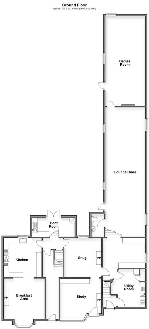 Room sizes:Entrance HallStudy: 12'9 x 12'5 (3.89m x 3.79m)Snug: 12'1 x 11'7 (3.69m x 3.53m)Kitchen: 12'1 x 11'7 (3.69m x 3.53m)Breakfast Area: 13'9 into bay x 12'9 (4.19m x 3.89m)Boot Room: 13'3 x 6'2 (4.04m x 1.88m)Utility Room: 14'9 x 10'4 (4.50m x 3.15m)Inner HallCloakroomLounge/Diner: 39'3 x 11'8 (11.97m x 3.56m)Games Room: 27'0 x 12'9 (8.24m x 3.89m)Wine Cellar: 10'9 x 5'6 (3.28m x 1.68m)LandingMaster Bedroom: 13'1 x 11'5 (3.99m x 3.48m)En Suite Shower RoomWalk In WardrobeFamily Bath/Shower Room: 13'3 x 12'8 (4.04m x 3.86m)Bedroom 6: 12'9 x 10'6 (3.89m x 3.20m)Bedroom 5: 12'6 x 11'9 (3.81m x 3.58m)En Suite Shower RoomLandingBedroom 3: 14'11 x 10'11 (4.55m x 3.33m)En Suite BathroomBedroom 4: 12'9 x 9'8 (3.89m x 2.95m)En Suite Shower RoomBedroom 2: 16'1 x 14'10 (4.91m x 4.52m)En Suite Shower RoomRear GardenFront GardenDriveway