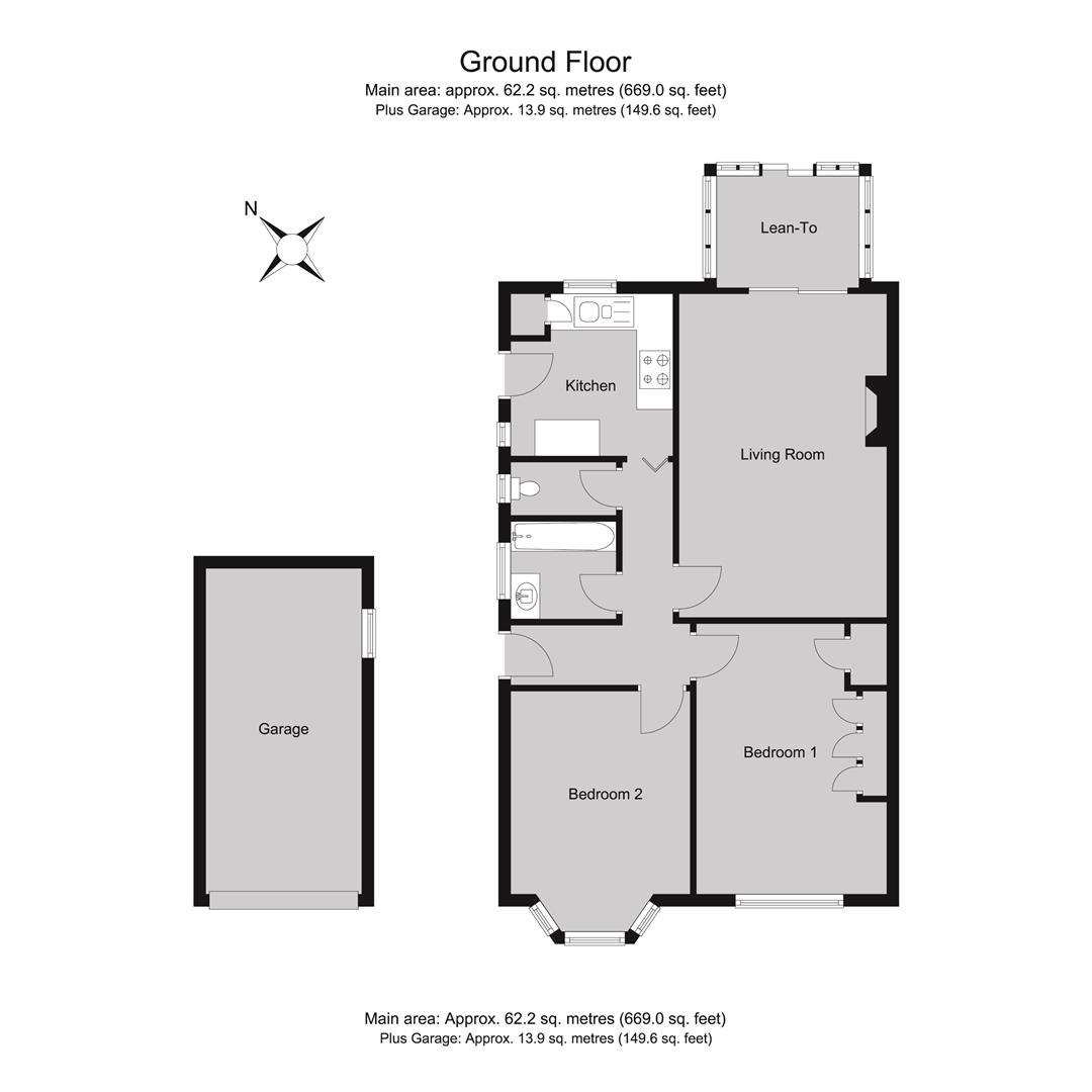 The comfortably proportioned accommodation is arranged to provide an entrance hall, a generous living room, a kitchen, a lean-to, two double bedrooms, a bathroom, and a separate cloakroom.