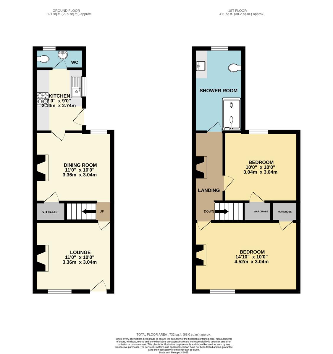 To the first floor are two double bedrooms, a shower room and landing. The landing has been created so that you don't have to walk through a bedroom to get to the bathroom. The master bedroom is a larger sized double, with each bedroom including a useful built in cupboard. The large white shower suite includes a shower cubicle, hand basin/vanity unit and W.C.