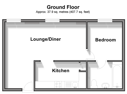 Please refer to the footnote regarding the services and appliances. Room sizes:Lounge: 18'5 x 15'2 (5.62m x 4.63m)Ktchen: 12'8 x 5'9 (3.86m x 1.75m)Bedroom: 9'2 x 8'4 (2.80m x 2.54m)Bathroom: 7'0 x 5'9 (2.14m x 1.75m)