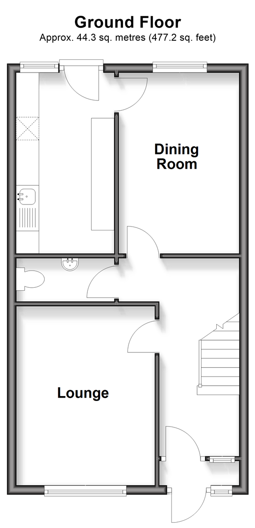 Please refer to the footnote regarding the services and appliances. Room sizes:Entrance HallwayLounge: 12'6 x 10'0 (3.81m x 3.05m)CloakroomDining Room: 13'0 x 8'8 (3.97m x 2.64m)Kitchen: 12'9 x 7'0 (3.89m x 2.14m)LandingBedroom 3: 9'6 x 7'5 (2.90m x 2.26m)Bedroom 2: 12'9 x 8'1 (3.89m x 2.47m)BathroomBedroom 1: 16'0 x 10'0 (4.88m x 3.05m)StoreFront and Rear Gardens