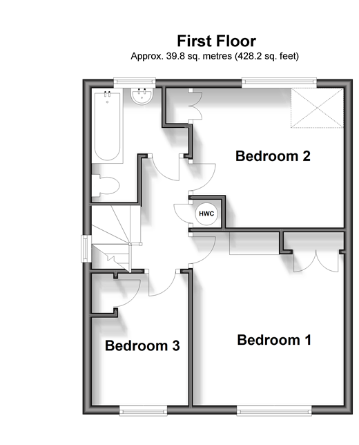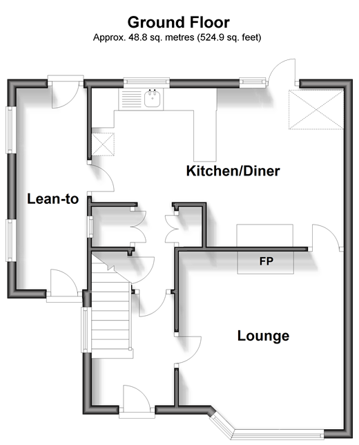 Please refer to the footnote regarding the services and appliances. Room sizes:Entrance HallwayLounge: 12'1 x 11'3 (3.69m x 3.43m)Kitchen/Diner: 18'4 x 11'8 (5.59m x 3.56m)Lean-toLandingBedroom 1: 12'8 x 11'0 (3.86m x 3.36m)Bedroom 2: 10'11 x 10'2 (3.33m x 3.10m)Bedroom 3: 9'11 x 7'1 (3.02m x 2.16m)BathroomFront GardenDrivewayRear Garden