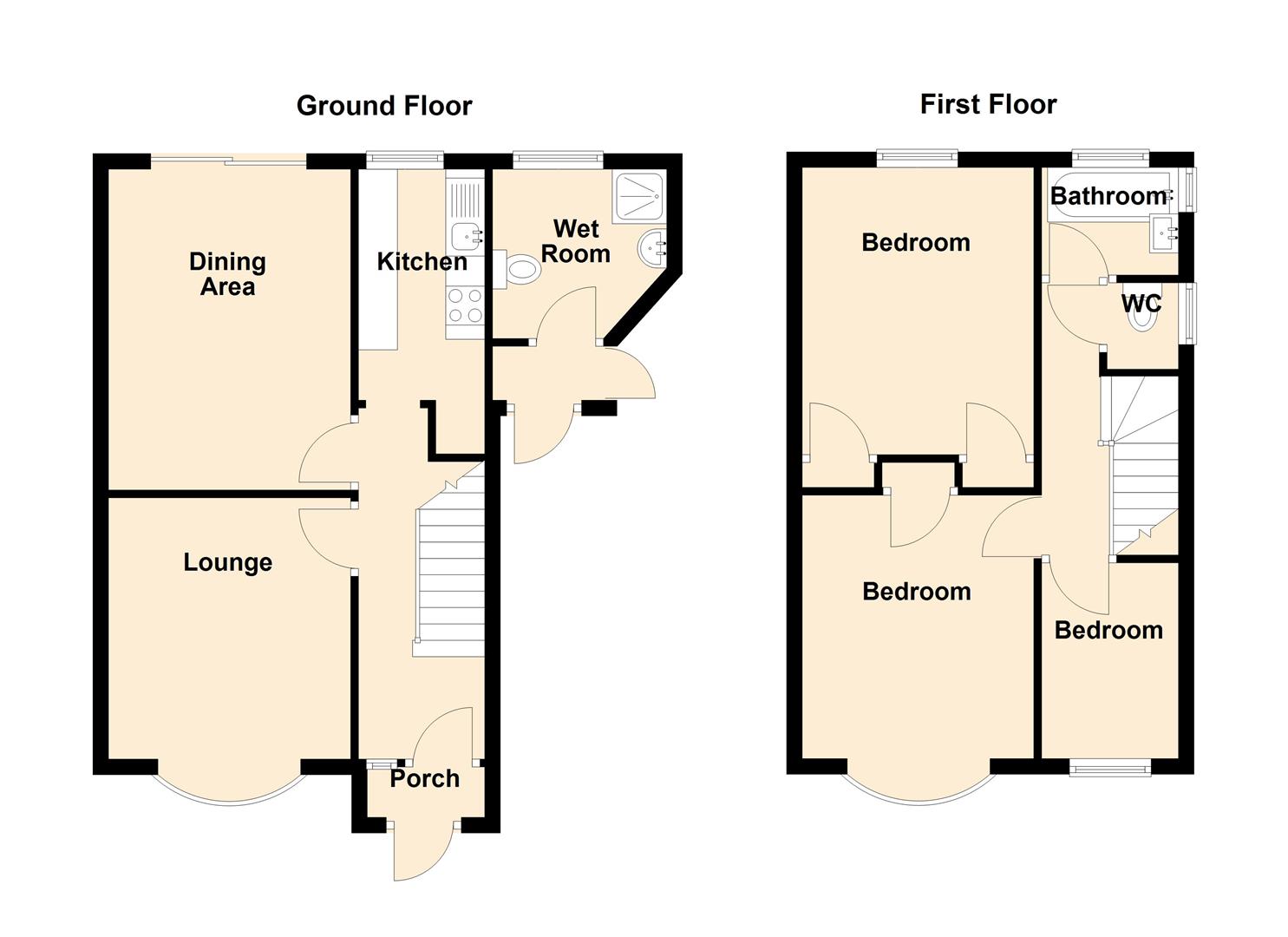 The ground floor features a welcoming lounge, a separate dining room, a fitted kitchen, and a practical wet room. Upstairs, you ll find three well-proportioned bedrooms along with a family bathroom and a separate cloakroom/WC.