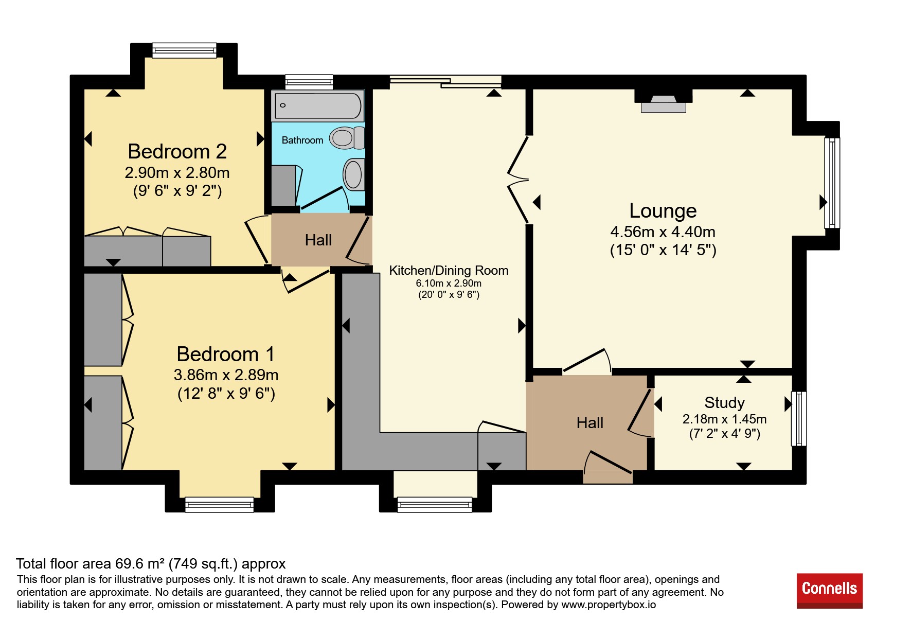 Study 7' 2" x 4' 9" ( 2.18m x 1.45m )