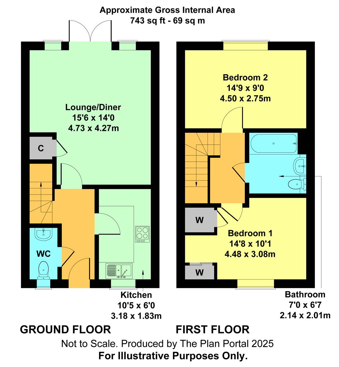 Bedroom 2 14' 9 x 9' 3 (4.5m x 2.75m)