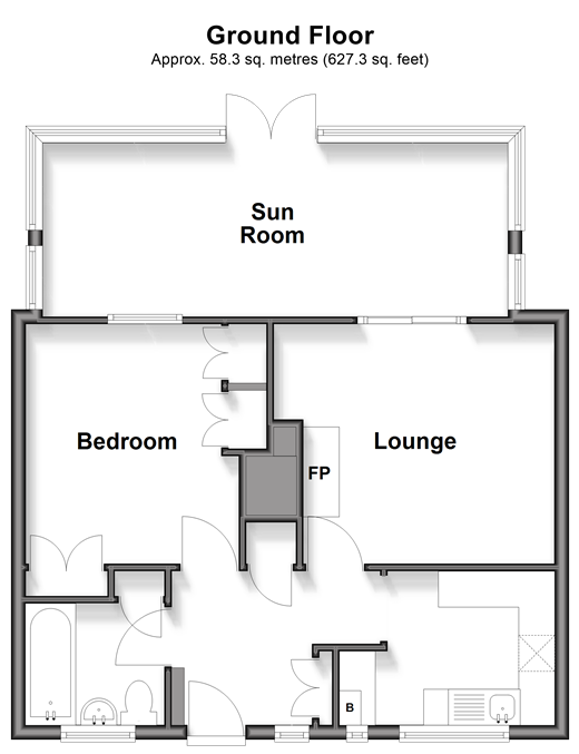 Please refer to the footnote regarding the services and appliances. Room sizes:Entrance hallLounge: 13'0 (3.97m) narrowing to 11'6 (3.51m) x 10'10 (3.30m)Bedroom: 10'11 x 9'9 (3.33m x 2.97m)Sun Room: 21'1 x 7'9 (6.43m x 2.36m)Kitchen: 9'10 x 6'9 (3.00m x 2.06m)Bathroom: 6'8 x 5'5 (2.03m x 1.65m)Off Road ParkingFront & Rear Gardens