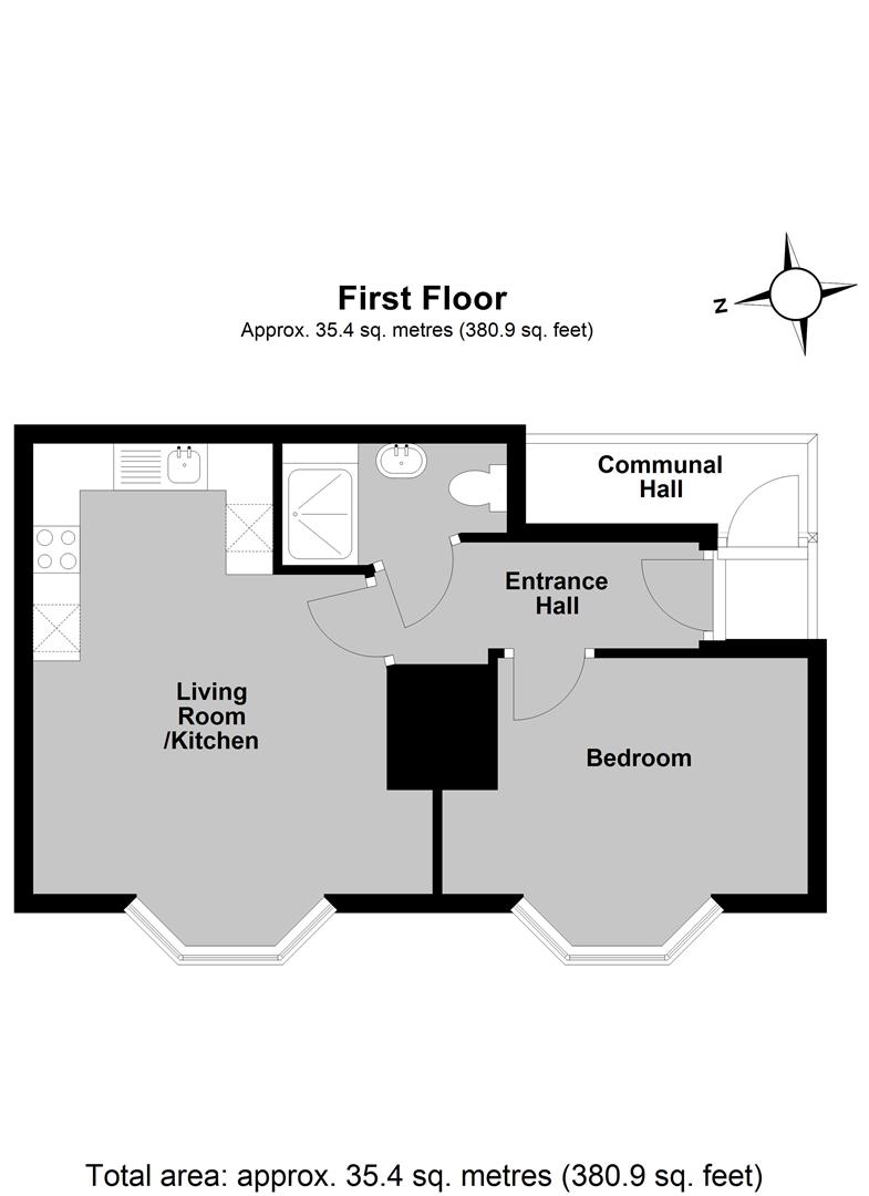 The bright and spacious accommodation is smartly presented throughout, to include Karndean flooring to the living room and bedroom, and is arranged to provide an entrance hall, living room with kitchen, a double bedroom and a bathroom.